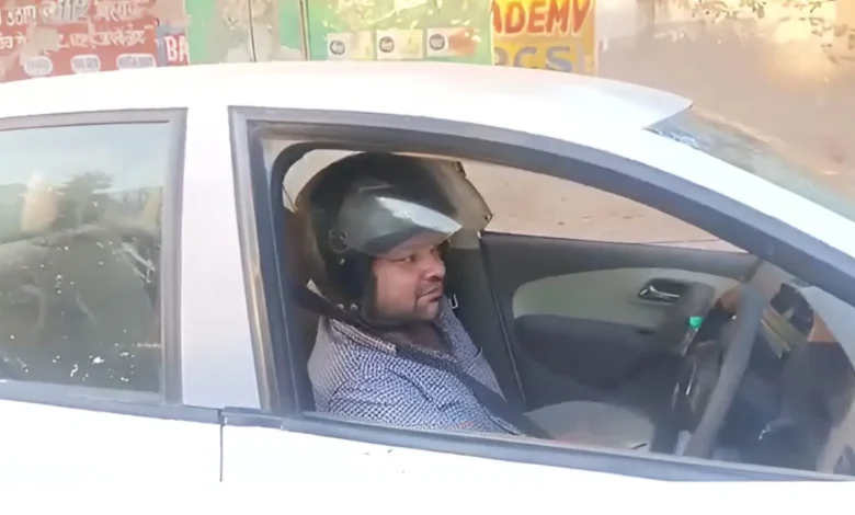 आगरा: कार मालिक का बिना हेलमेट चालान, अब ड्राइवर हेलमेट पहनकर चला रहा कार, Video वायरल