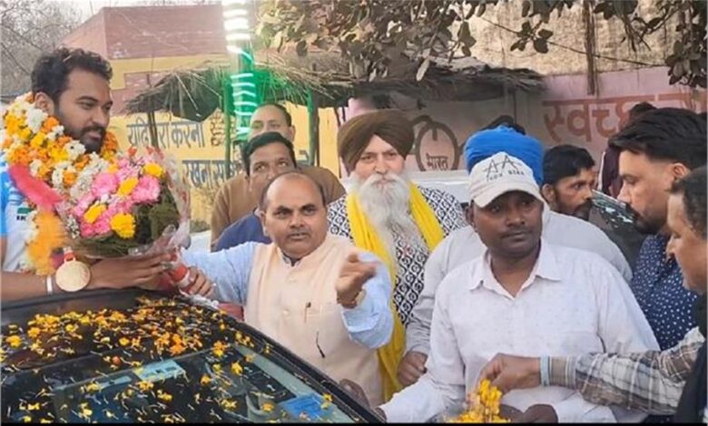 इंडोनेशिया में गोल्ड जीतकर लौटे आर्यन का भव्य स्वागत: गांव नहोनी में निकाला विजय जुलूस; गोल्ड मेडल से देश का नाम रोशन