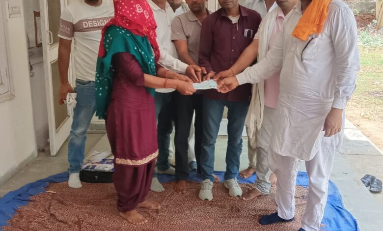 भारतीय मजदूर संघ के सहयोग से परिजनों को भेंट की तीन लाख की सहायता राशी
