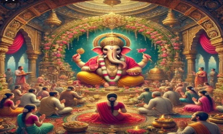 - पूजा सामग्री: गणेश प्रतिमा, दूर्वा, मोदक, दीपक और अक्षत चावल.