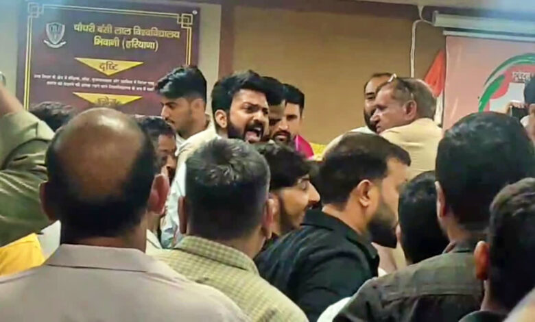भिवानी यूनिवर्सिटी सियासी अखाड़ा बनी, इनसो ने ABVP का कार्यक्रम रोका, दिग्विजय चौटाला ने दी चेतावनी