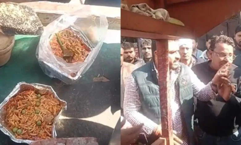 उत्तर प्रदेश के गाजियाबाद के लोनी इलाके में वेज बिरयानी में हड्डी मिलने से हड़कंप मच गया. आरोप है कि हिंदू नाम से बिरयानी बेचने वाली दुकान से जब एक परिवार से वेज बिरयानी खरीदी तो उसके अंदर से हड्डी निकल आई. इसके बाद इलाके में हंगामा हो गया. पीड़ित परिवार ने मामले की शिकायत पुलिस में दर्ज कराई. इस घटना का वीडियो भी सोशल मीडिया वायरल हो रहा है.