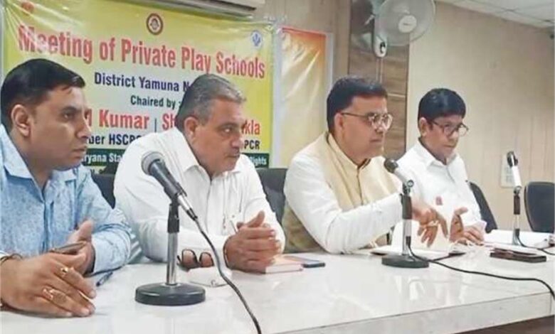 जानकारी के अनुसार हरियाणा राज्य बाल अधिकार संरक्षण आयोग के सदस्य अनिल कुमार और श्याम शुक्ला आज यमुनानगर पहुंचे। यहां उन्होंने प्ले स्कूल संचालकों से स्कूलों के पंजीकरण और बच्चों की सुरक्षा विषयों को लेकर बैठक ली। आयोग के सदस्य अनिल कुमार ने कहा कि जिले में चल रहे प्राइवेट प्ले स्कूलों को पंजीकरण कराना अनिवार्य है। उन्होंने बच्चों की सुरक्षा, उनके अधिकारों की रक्षा और निजी संस्थानों व एजेंसियों की गतिविधियों की समीक्षा के लिए अधिकारियों की बैठक ली है। उन्होंने कहा कि इन प्ले स्कूलों में कोई भी स्टाफ होगा उसकी पुलिस वेरिफिकेशन आवश्यक होगी, उसका रिकॉर्ड आधार कार्ड रखना अनिवार्य होगा। उन्होंने सभी महिला एवं बाल विकास परियोजना अधिकारियों सुपरवाइजर को निर्देश दिए कि वे अपने क्षेत्र के अंतर्गत आने वाले निजी प्ले स्कूलों का पंजीकरण सभी खंड शिक्षा अधिकारी जिला बाल संरक्षण इकाई के सहयोग से करें।
