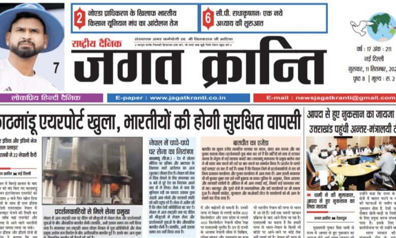 दैनिक जगत क्रान्ति दिल्ली दिनांक 11/09/2025