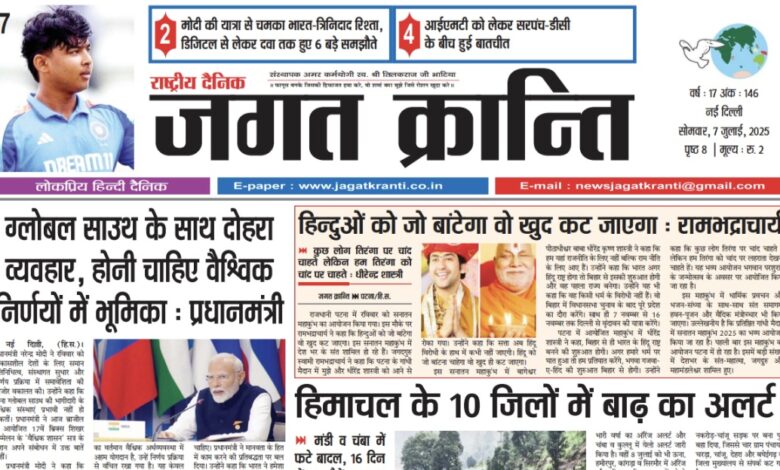 दैनिक जगत क्रान्ति दिल्ली दिनांक 07/07/2025