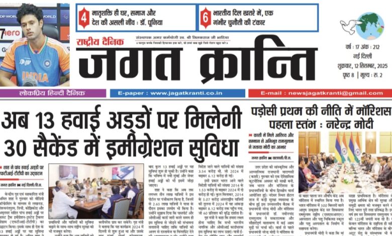 दैनिक जगत क्रान्ति दिल्ली दिनांक 12/09/2025
