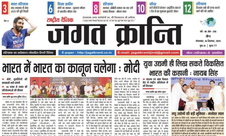 Home/हरियाणा संस्करण/दैनिक जगत क्रान्ति जीन्द हरियाणा, दिनांक 16/09/2025 हरियाणा संस्करण दैनिक जगत क्रान्ति जीन्द हरियाणा, दिनांक 16/09/2025 Arun Bhatia Send an email September 16, 2025 48 Less than a minute Tags# jagat Kranti jind Haryana #jagatkranti Epaper jagat kranti Haryana hindi newspaper Hindi epaper National hindi newspaper Arun Bhatia Send an email September 16, 2025 48 Less than a minute