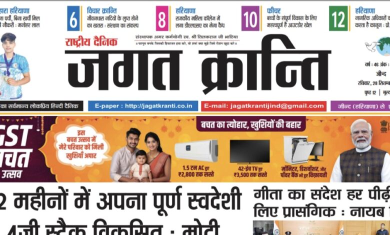 दैनिक जगत क्रान्ति जीन्द हरियाणा, दिनांक 28/09/2025