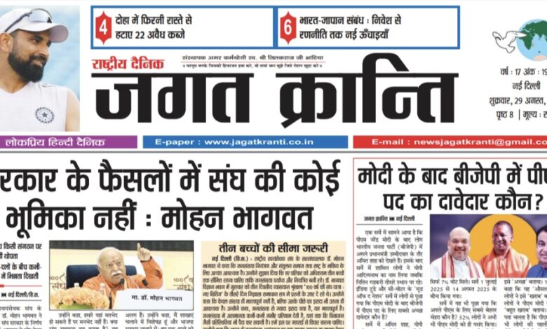 दैनिक जगत क्रान्ति जीन्द हरियाणा, दिनांक 29/08/2025