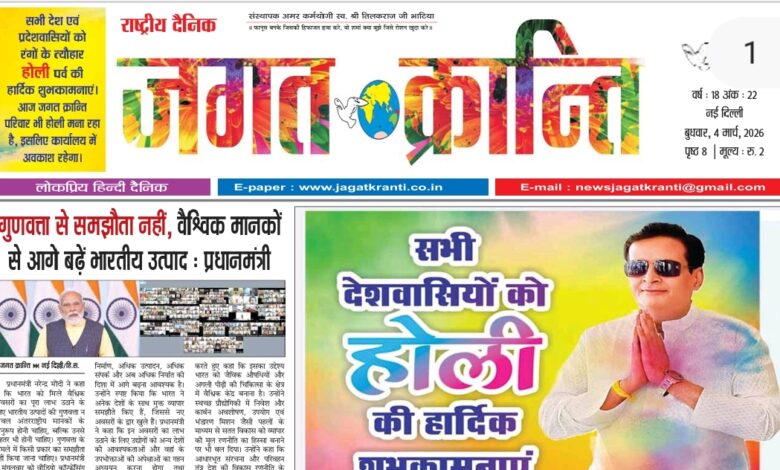 Home/दिल्ली संस्करण/दैनिक जगत क्रान्ति दिल्ली दिनांक 04/03/2026 दिल्ली संस्करण दैनिक जगत क्रान्ति दिल्ली दिनांक 04/03/2026 Arun Bhatia Send an email March 4, 2026 21 Less than a minute Tags# jagat Kranti Delhi #jagatkranti Delhi hindi newspaper Epaper jagat kranti Hindi epaper National hindi newspaper Arun Bhatia Send an email March 4, 2026 21 Less than a minute