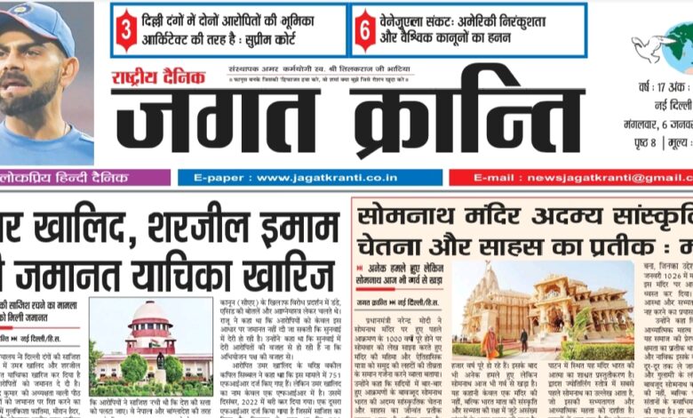 दैनिक जगत क्रान्ति दिल्ली दिनांक 06/01/2026