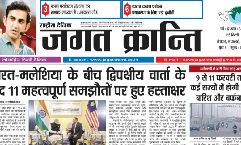 दैनिक जगत क्रान्ति दिल्ली दिनांक 09/02/2026