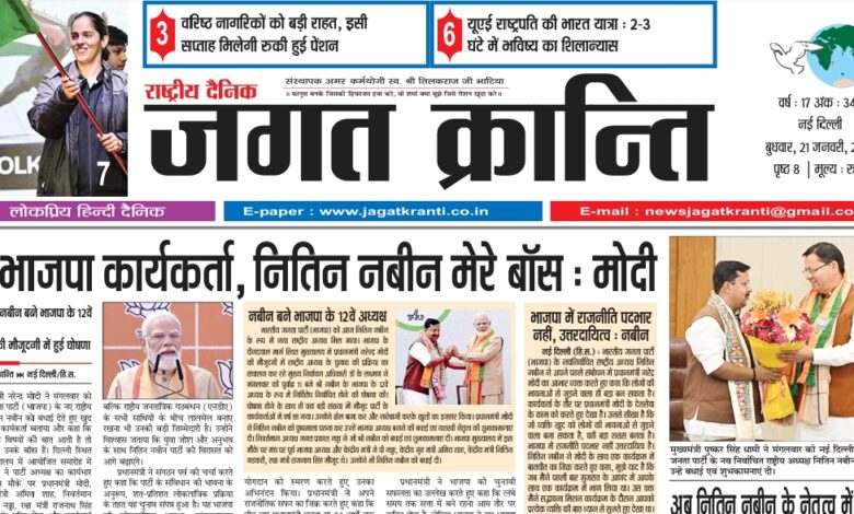 दैनिक जगत क्रान्ति दिल्ली दिनांक 21/01/2026