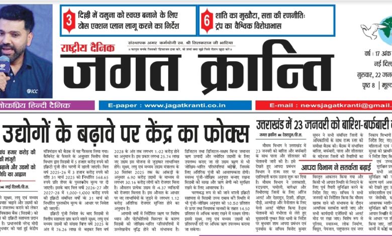 दैनिक जगत क्रान्ति दिल्ली दिनांक 22/01/2026