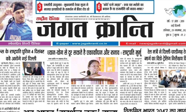 दैनिक जगत क्रान्ति दिल्ली दिनांक 29/11/2025