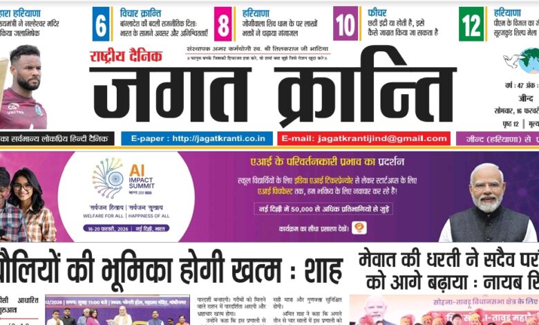 Home/हरियाणा संस्करण/दैनिक जगत क्रान्ति हरियाणा दिनांक 16/02/2026 हरियाणा संस्करण दैनिक जगत क्रान्ति हरियाणा दिनांक 16/02/2026 Arun Bhatia Send an email February 16, 2026 19 Less than a minute Tags# jagat Kranti jind Haryana #jagatkranti Epaper jagat kranti Haryana hindi newspaper Hindi epaper National hindi newspaper Arun Bhatia Send an email February 16, 2026 19 Less than a minute