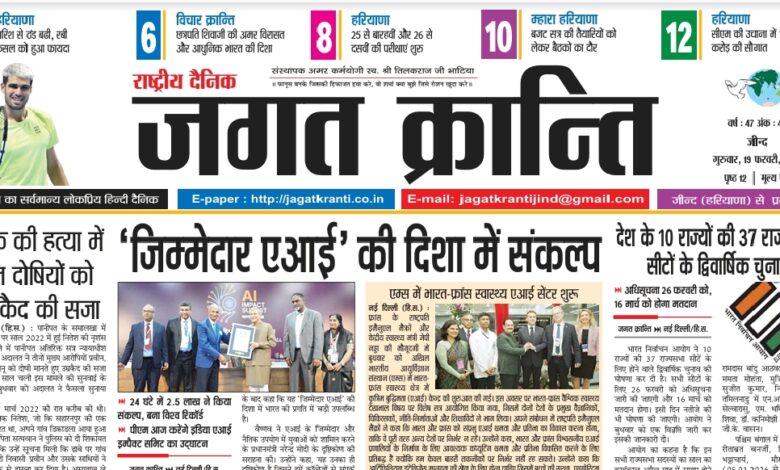 Home/हरियाणा संस्करण/दैनिक जगत क्रान्ति हरियाणा दिनांक 19/02/2026 हरियाणा संस्करण दैनिक जगत क्रान्ति हरियाणा दिनांक 19/02/2026 Arun Bhatia Send an email February 19, 2026 13 Less than a minute Tags# jagat Kranti jind Haryana #jagatkranti Epaper jagat kranti Haryana hindi newspaper Hindi epaper National hindi newspaper Arun Bhatia Send an email February 19, 2026 13 Less than a minute