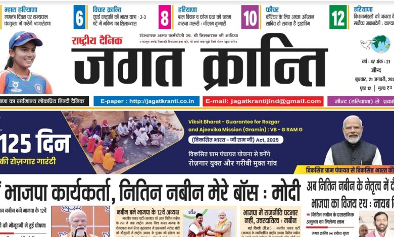 Home/हरियाणा संस्करण/दैनिक जगत क्रान्ति हरियाणा दिनांक 21/01/2026 हरियाणा संस्करण दैनिक जगत क्रान्ति हरियाणा दिनांक 21/01/2026 Arun Bhatia Send an email January 21, 2026 23 Less than a minute Tags# jagat Kranti jind Haryana #jagatkranti Epaper jagat kranti Haryana hindi newspaper Hindi epaper National hindi newspaper Arun Bhatia Send an email January 21, 2026 23 Less than a minute