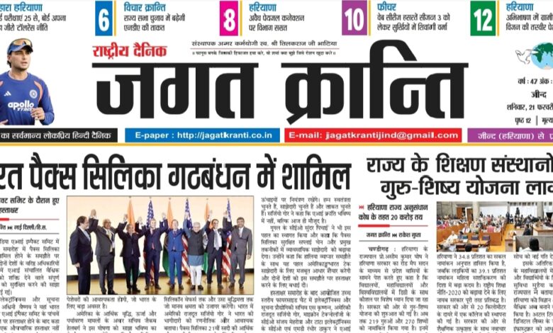 Home/हरियाणा संस्करण/दैनिक जगत क्रान्ति हरियाणा दिनांक 21/02/2026 हरियाणा संस्करण दैनिक जगत क्रान्ति हरियाणा दिनांक 21/02/2026 Arun Bhatia Send an email February 21, 2026 23 Less than a minute Tags# jagat Kranti jind Haryana #jagatkranti Epaper jagat kranti Haryana hindi newspaper Hindi epaper National hindi newspaper Arun Bhatia Send an email February 21, 2026 23 Less than a minute