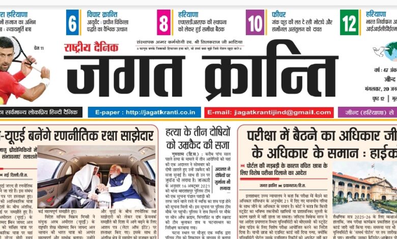 दैनिक जगत क्रान्ति हरियाणा दिनांक 20/01/2026