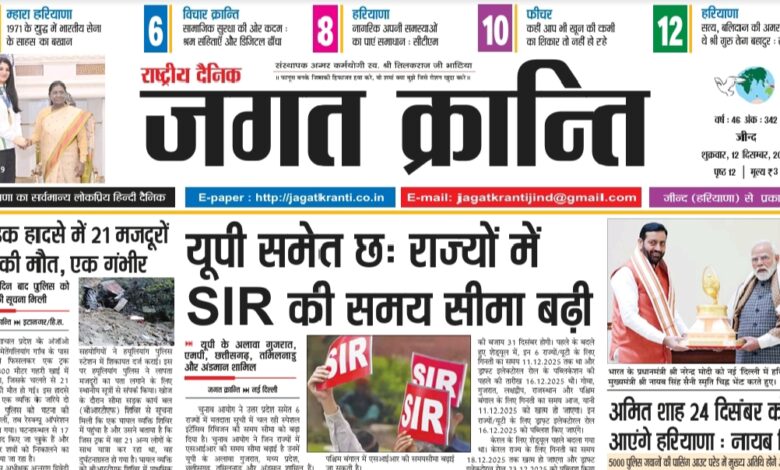 Home/हरियाणा संस्करण/दैनिक जगत क्रान्ति जीन्द हरियाणा, दिनांक 12/12/2025 हरियाणा संस्करण दैनिक जगत क्रान्ति जीन्द हरियाणा, दिनांक 12/12/2025 Arun Bhatia Send an email December 12, 2025 47 Less than a minute Tags# jagat Kranti jind Haryana #jagatkranti Epaper jagat kranti Haryana hindi newspaper Hindi epaper National hindi newspaper Arun Bhatia Send an email December 12, 2025 47 Less than a minute