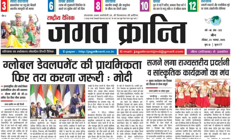 दैनिक जगत क्रान्ति जीन्द हरियाणा, दिनांक 23/11/2025