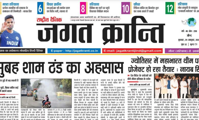 Home/हरियाणा संस्करण/दैनिक जगत क्रान्ति जीन्द हरियाणा, दिनांक 29/10/2025 हरियाणा संस्करण दैनिक जगत क्रान्ति जीन्द हरियाणा, दिनांक 29/10/2025 Arun Bhatia Send an email October 29, 2025 31 Less than a minute Tags# jagat Kranti jind Haryana #jagatkranti Epaper jagat kranti Haryana hindi newspaper Hindi epaper National hindi newspaper Arun Bhatia Send an email October 29, 2025 31 Less than a minute