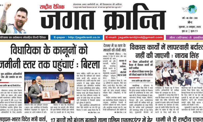 Home/हरियाणा संस्करण/दैनिक जगत क्रान्ति जीन्द हरियाणा, दिनांक 31/10/2025 हरियाणा संस्करण दैनिक जगत क्रान्ति जीन्द हरियाणा, दिनांक 31/10/2025 Arun Bhatia Send an email October 31, 2025 46 Less than a minute Tags# jagat Kranti jind Haryana #jagatkranti Epaper jagat kranti Haryana hindi newspaper Hindi epaper National hindi newspaper Arun Bhatia Send an email October 31, 2025 46 Less than a minute