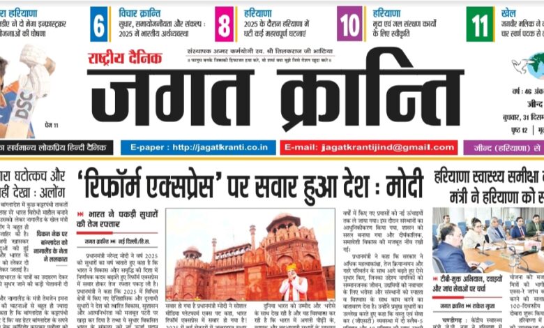 Home/हरियाणा संस्करण/दैनिक जगत क्रान्ति जीन्द हरियाणा, दिनांक 31/12/2025 हरियाणा संस्करण दैनिक जगत क्रान्ति जीन्द हरियाणा, दिनांक 31/12/2025 Arun Bhatia Send an email December 31, 2025 87 Less than a minute Tags# jagat Kranti jind Haryana #jagatkranti Epaper jagat kranti Haryana hindi newspaper Hindi epaper National hindi newspaper Arun Bhatia Send an email December 31, 2025 87 Less than a minute