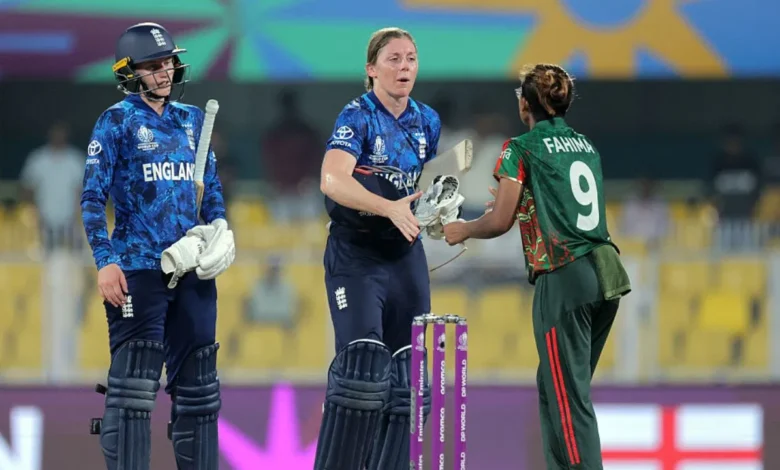 आईसीसी महिला वर्ल्ड कप 2025 के आठवें लीग मुकाबले में गुवाहाटी के बरसापारा क्रिकेट स्टेडियम में बांग्लादेश महिला टीम और इंग्लैंड महिला टीम के बीच रोमांचक टक्कर देखने को मिला. इस मैच में इंग्लैंड की टीम ने 4 विकेट से बाजी मारी और टूर्नामेंट में लगातार दूसरी जीत हासिल की. ये मैच लॉ स्कोरिंग रहा, लेकिन एक छोटा स्कोर बनाने के बावजूद बांग्लादेश ने इंग्लैंड को अच्छी टक्कर दी. लेकिन वह जीत हासिल नहीं कर सकी.