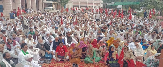 लोहारू। संयुक्त किसान मोर्चा के आह्वान पर उपमंडल कार्यालय के बाहर चल रहे 136 दिन के अनिश्चितकालीन किसान धरने में शुक्रवार को किसान महापंचायत आयोजित हुई। बड़ी संख्या में किसान, महिलाएं और किसान संगठनों के पदाधिकारी एकत्र हुए और फसल बीमा क्लेम जारी न होने पर सरकार के खिलाफ नारेबाजी की। महापंचायत में 350 करोड़ रुपये के फसल बीमा क्लेम को तुरंत जारी करवाने की मांग प्रमुख रही। किसानों ने चेतावनी दी कि यदि मांगें पूरी नहीं हुईं तो आंदोलन और अधिक उग्र किया जाएगा।
