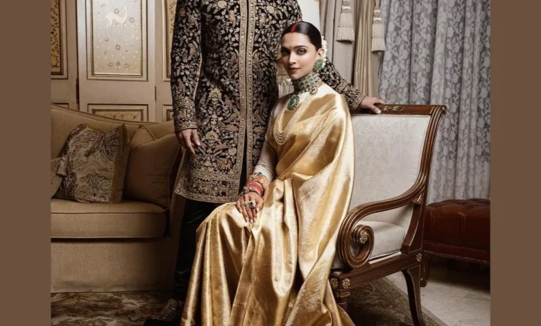 नई दुल्हनों पर बंधेज साड़ियां भी खूब फबती हैं. आप दीपिका पादुकोण की तरह रेड कलर की बंधेज साड़ी ले सकती हैं जो वेडिंग के बाद के रिच्युअल्स पर आपको परफेक्ट लुक देगी. एक्ट्रेस ने घरचोला डिजाइन की साड़ी पहनी है, जिसपर एम्ब्रॉयडरी वर्क भी किया गया है.