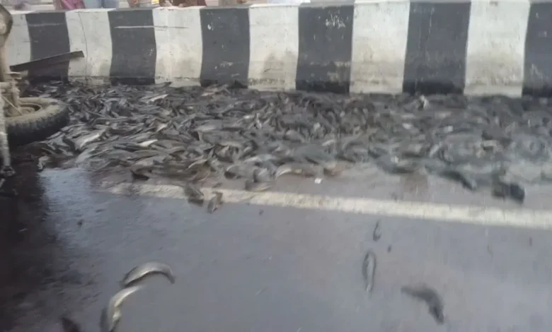 हाईवे पर मछलियों की लूट देखकर कुछ लोगों ने कहा कि लगता है जैसे बिल्ली के भाग्य से छीका फूटा. सड़क पर दूर-दूर तक फैली मछलियों को पकड़ने की होड़ सुबह तक जारी रही. सुबह होने पर कई मछलियां मौके पर मरी हुई मिलीं.