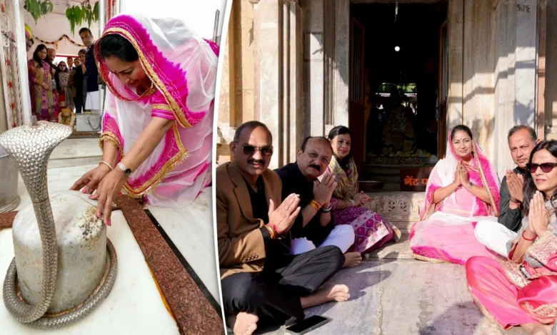 महाशिवरात्रि के अवसर पर दिल्ली की मुख्यमंत्री रेखा गुप्ता ने अपनी कैबिनेट के साथ उदयपुर के अम्बेरी स्थित प्राचीन श्री अमरख महादेव मंदिर में की पूजा अर्चना.