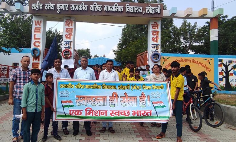 भिवानी, (ब्यूरो): शहीद रमेश कुमार राजकीय वरिष्ठ माध्यमिक विद्यालय में महात्मा गांधी जयंती के उपलक्ष्य में स्पेशल शांति रैली का आयोजन किया गया। नलसा और डलसा भिवानी के कार्यक्रमानुसार और डीईओ भिवानी के निर्देशानुसार शांति साइकिल रैली निकाली गई। रैली के बाद विद्यालय प्रांगण में महात्मा गांधी का अहिंसा और शांति संदेश विषय पर कार्यक्रम हुआ। महात्मा गांधी के जीवन मूल्यों और उनके योगदान पर प्रधानाचार्य भगत सिंह कोठारी ने चर्चा की। उन्होंने बताया कि विश्व में अहिंसा और शांति के सबसे बड़े पुजारी महात्मा गांधी थे। लीगल लिट्रेसी इंचार्ज सतपाल डुडी ने महात्मा गांधी की शिक्षाओं पर प्रकाश डाला और बताया कि किस प्रकार महात्मा गांधी की शिक्षाएं वर्तमान में प्रासंगिक हैं। कार्यक्रम में प्रवक्ता मंजू, सुरेन्द्र शर्मा, कृष्ण कुमार, प्रवीण ने भी अपने विचार रखे। डीपीई जगबीर ग्रेवाल ने साइकिल रैली की अगुवाई की तथा कार्यक्रम संचालन संजय कुमार तोमर ने किया।