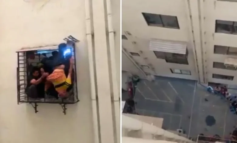 10वीं मंजिल से गिरा शख्स 8वें फ्लोर पर फंसा, 1 घंटे तक झूलता रहा – Video वायरल