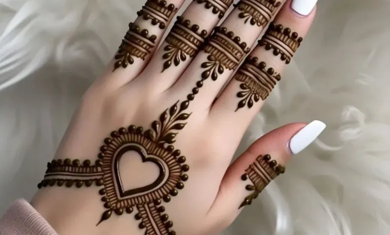 जब तक बैक हैंड में मेहंदी न लगे तो कुछ अधूरा सा लगता है. लास्ट मिनट डिजाइन की बात करें तो आप ये हार्ट शेप वाली मेहंदी लगा सकती हैं. सेंटर में दिल का आकार बनाएं और फिर आउटलाइन को थिक करने के बाद एक बार फिर से दो बार थोड़े-थोड़े गैप पर आउटिंग करते हुए हार्ट ड्रॉप करें. इसके बाद उंगलियों पर डॉट और बेलों से पैटर्न तैयार कर लें. यह डिजाइन मॉडर्न मेहंदी आर्टि को दिखाता है.