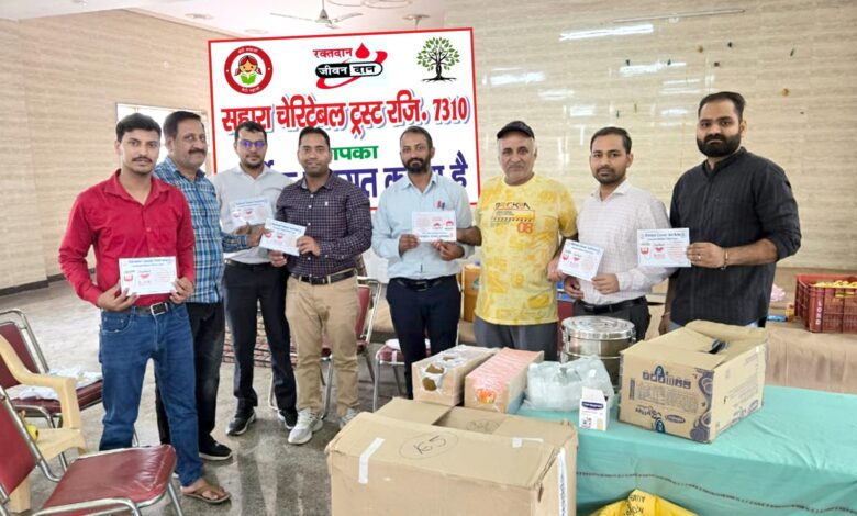 भिवानी (ब्यूरो): गुरुनानक देव जी के प्रकाश उत्सव के उपलक्ष्य में सहारा चेरिटेबल ट्रस्ट ने मानवता और सेवा की भावना को आगे बढ़ाते हुए एक महत्वपूर्ण पहल की। सहारा चेरिटेबल ट्रस्ट के अध्यक्ष जगदीश मिताथल ने बताया कि ट्रस्ट द्वारा शतकवीर रक्तदाता राजेश डुडेजा की देखरेख में कैंसर मरीजों की सहायता के उद्देश्य से स्थानीय दादरी गेट पर एक विशाल रक्तदान शिविर का आयोजन किया गया। यह नेक कार्य सर्व हरियाणा ग्रामीण बैंक दादरी गेट शाखा के सौजन्य से संपन्न हुआ, जिसमें एम्स बाढ़सा की डॉ. रीना ने अपनी टीम के साथ रक्त संग्रह में महत्वपूर्ण भूमिका निभाई। शिविर में 82 लोगों ने रक्तदान किया। इस मौके पर शतकवीर रक्तदाता राजेश डुडेजा और ट्रस्ट के अध्यक्ष जगदीश मिताथल ने रक्तदान के महत्व पर जोर दिया। सहारा चेरिटेबल ट्रस्ट के अध्यक्ष जगदीश मिताथल ने कहा कि गुरुनानक देव जी के सेवा और मानवता के सिद्धांतों को चरितार्थ करते हुए कैंसर जैसे गंभीर रोगों से जूझ रहे मरीजों के लिए जीवनदायिनी रक्त की उपलब्धता सुनिश्चित करने की दिशा में एक महत्वपूर्ण कदम बढ़ाया है। उन्होंने स्पष्ट किया कि रक्त का दुनिया में कोई विकल्प नहीं है। उन्होंने कहा मानव शरीर का रक्त ही दूसरों में खून की कमी को पूरा कर किसी का जीवन बचा सकता है। शतकवीर रक्तदाता राजेश डुडेजा ने भावनात्मक अपील करते हुए कहा कि रक्तदान करने वाला व्यक्ति सिर्फ एक जान नहीं बचाता, बल्कि उससे जुड़े अनेक व्यक्तियों की जिंदगी में खुशी भरता है। उन्होंने विशेष रूप से युवाओं से आग्रह किया कि वे इस महान सामाजिक कार्य में बढ़-चढकऱ हिस्सा लें और जरूरतमंदों की जान बचाने में सहयोग करें। इस अवसर पर अशोक यादव, मनीष वर्मा सहित गणमान्य नागरिक मौजूद रहे।