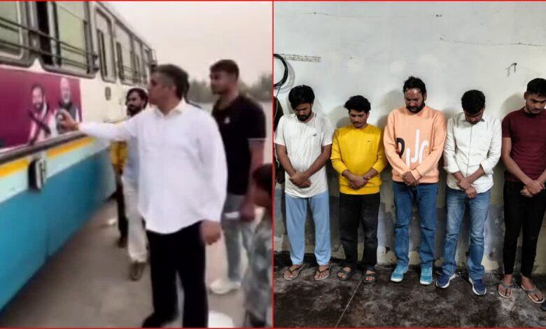 कांग्रेस कार्यकर्ता बताए जा रहे पांचों युवक: गिरफ्तार आरोपियों की पहचान अफजल, आमिर, मुबीन, अफाक और बासित के रूप में हुई है. जितेंद्र यादव शहर थाना नूंह प्रभारी ने कहा कि “पांच कांग्रेस के कार्यकर्ताओं को जमानत पर छोड़ा जा रहा है. इस मामले में बाकि आरोपियों की तलाश जारी है. इन लोगों ने रोडवेज बस पर लगी पीएम मोदी, सीएम नायब सैनी की तस्वीरों पर काले रंग का स्प्रे किया था. मामले में पुलिस की कार्रवाई जारी है.”