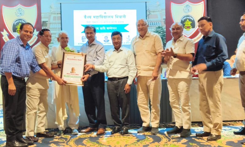 भिवानी,(ब्यूरो): हिंदी दिवस के उपलक्ष्य में वैश्य महाविद्यालय भिवानी के हिंदी विभाग एवं साहित्य सुरभि प्रकोष्ठ के संयुक्त तत्वावधान में भव्य कवि सम्मेलन का आयोजन वैश्य महाविद्यालय के प्राचार्य डॉ संजय गोयल, हिंदी विभागाध्यक्ष डॉ अनिल तंवर एवं आयोजक सचिव डॉ कामना कौशिक की देखरेख में महाविद्यालय के सभागार में आयोजित किया गया। कार्यक्रम में मुख्य रूप से वैश्य महाविद्यालय ट्रस्ट के प्रधान एडवोकेट शिवरतन गुप्ता,वैश्य महाविद्यालय प्रबंधक समिति के कोषाध्यक्ष बृजलाल सर्राफ,ट्रस्टी विजयकिशन अग्रवाल,प्राचार्य डॉ संजय गोयल एवं कार्यक्रम संयोजक हिंदी विभागाध्यक्ष डॉ अनिल तंवर ने शिरकत की।कवि सम्मेलन में सुप्रसिद्ध कवियों विजेंद्र गाफिल,प्रो. रश्मि बजाज,प्रो. श्याम वशिष्ठ, विकास यशकीर्ति एवं डॉ. हरिकेश पंघाल ने अपनी रचनाओं के माध्यम से समा बांध दिया।कवि सम्मेलन का शुभारंभ मां सरस्वती के चित्र के सम्मुख दीप प्रज्वलित करते हुए अतिथियों द्वारा किया गया।