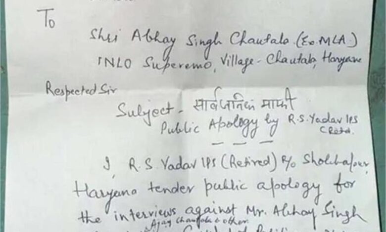 अभय चौटाला को लेकर रिटायर्ड IPS का फॉर्मल माफी पत्र, वजह चर्चा में
