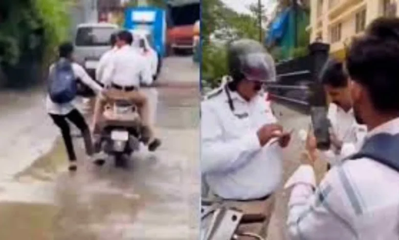 ठाणे में ट्रैफिक पुलिस से भिड़ा छात्र, चालान काटने वाली पुलिस गाड़ी पर उठे सवाल