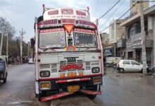 टोहाना: नागरिक अस्पताल के पास भीषण हादसा, बाइक सवार को बचाने के चक्कर में डिवाइडर पर चढ़ा ट्रक