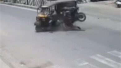 रोहतक में बाइक और ऑटो की जोरदार टक्कर, मोटरसाइकिल के उड़े खरपच्चे