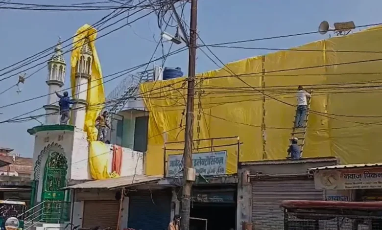संभल में तिरपाल से कवर की गई मस्जिदें