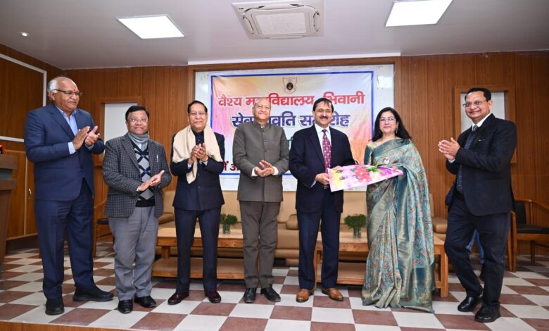 भिवानी,(ब्यूरो): वैश्य महाविद्यालय के रसायन विभाग की एसोसिएट प्रोफेसर सविता जैन 37 वर्षों की सेवा के बाद सेवानिवृत हो गई।उनकी सेवानिवृति के अवसर पर वैश्य महाविद्यालय प्रबंधक समिति द्वारा उनके सम्मान में भव्य विदाई समारोह आयोजित किया गया।समारोह में वैश्य महाविद्यालय प्रबंधक समिति द्वारा सविता जैन को शॉल एवं स्मृति चिन्ह भेंट कर सम्मानित किया गया। सेवानिवृति समारोह में मुख्य रूप से वैश्य महाविद्यालय ट्रस्ट के प्रधान एडवोकेट शिवरतन गुप्ता, महासचिव डॉ पवन बुवानीवाला,वैश्य महाविद्यालय प्रबंधक समिति के कोषाध्यक्ष बृजलाल सर्राफ,वैश्य महाविद्यालय ट्रस्ट के कोषाध्यक्ष विजय किशन अग्रवाल,प्राचार्य डॉ संजय गोयल, श्रीमती सविता जैन,उनके जीवन साथी राजेश जैन, भतीजे एडवोकेट पवन जैन,सुपुत्र वैभव जैन,चेतन जैन,पुत्रवधू रितिका जैन एवं महाविद्यालय परिवार के सदस्यगण शामिल थे।समारोह में मंच का सफल संचालन डॉ वंदना वत्स ने किया। प्राचार्य डॉ संजय गोयल ने समारोह में पधारे सभी अतिथियों का स्वागत करते हुए कहा कि सविता जैन ने अपने सेवाकाल के दौरान ईमानदारी के साथ अपना कर्तव्य पूरा किया। वैश्य महाविद्यालय ट्रस्ट के प्रधान एडवोकेट शिवरतन गुप्ता ने अपने संबोधन में कहा कि सेवानिवृति मात्र एक विकल्प है जिसके पश्चात व्यक्ति एक सेवा से दूसरी सेवा में प्रत्यार्पण करता है । उन्होंने सविता जैन के बेहतरीन भावी जीवन की कामना की। इस अवसर पर वैश्य महाविद्यालय परिवार के सभी स्टाफ सदस्य उपस्थित रहें।