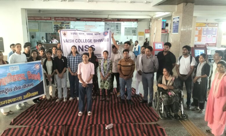 भिवानी, (ब्यूरो): हमें देश सेवा व मानव सेवा के लिए हमेशा तत्पर रहना चाहिए जनसेवा राष्ट्र की सच्ची सेवा है इस अभियान में स्वयंसेवक स्वयं जागरूक रहते हुए आमजन को भी जागरूक करे तभी स्वच्छ भारत के स्वपन को साकार किया जा सकता हैं यह बात वैश्य महाविद्यालय की राष्ट्रीय सेवा योजना इकाईयों के स्वयंसेवकों द्वारा सेवा पखवाड़ा के अंतर्गत रेलवे स्टेशन पर लघु नाटिका के माध्यम से आमजन को जागरूक कर रहे स्वयंसेवकों का उत्साहवर्धन करते हुए प्राचार्य डॉ संजय गोयल ने कहे। स्वयं सेवको ने रेलवे स्टेशन पहुंचकर रेल यात्रियों को राष्ट्रीय सेवा योजना के महत्व को समझाते हुए विभिन्न जनसेवी प्रकल्पों के प्रति आमजन को जागरूक किया । राष्ट्रीय सेवा योजना इकाईयों के कार्यक्रम अधिकारी डॉ कॉमना कौशिक एवं डॉ मोहनलाल ने सेवा पखवाड़ा अभियान की महता समझाते हुए हर नागरिक को इसे सफल बनाने में अपना योगदान देने के लिए प्रेरित किया। उन्होंने स्वयंसेवकों को राष्ट्रहित के लिए स्वच्छता व अन्य जनसेवी सरोकारों को लेकर जनजागरूकता लाने की मुहिम में अपनी अहम भूमिका निभाने की बात कही।इस अवसर पर काफी संख्या में स्वयंसेवक व स्टाफ सदस्य उपस्थित रहें।