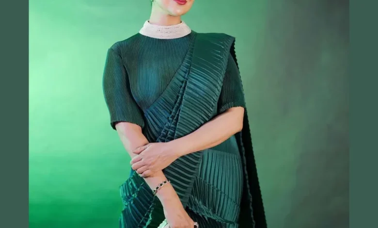 न्यू ईयर के लिए आप दिव्यांका त्रिपाठी का ये लुक क्रिएट करेंगी तो क्लासी स्टाइल के साथ ही स्टनिंग लुक मिलेगा. उन्होंने डार्क ग्रीन कलर की प्लीटेड साड़ी वियर की है, जिसके साथ हाफ स्लीव मैचिंग ब्लाउज है, जिसपर पर्ल डिटेलिंग वाली कॉलर लगाई गई है जो नेकलेस का इल्यूजन क्रिएट कर रही है. एक्ट्रेस ने हाई बन, सटल मेकअप और मिनिमलिस्टिक एसेसरीज के साथ लुक को फिनिश किया है.